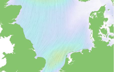 Geanimeerde kaarten van de Noordzee van golven, wind en getij